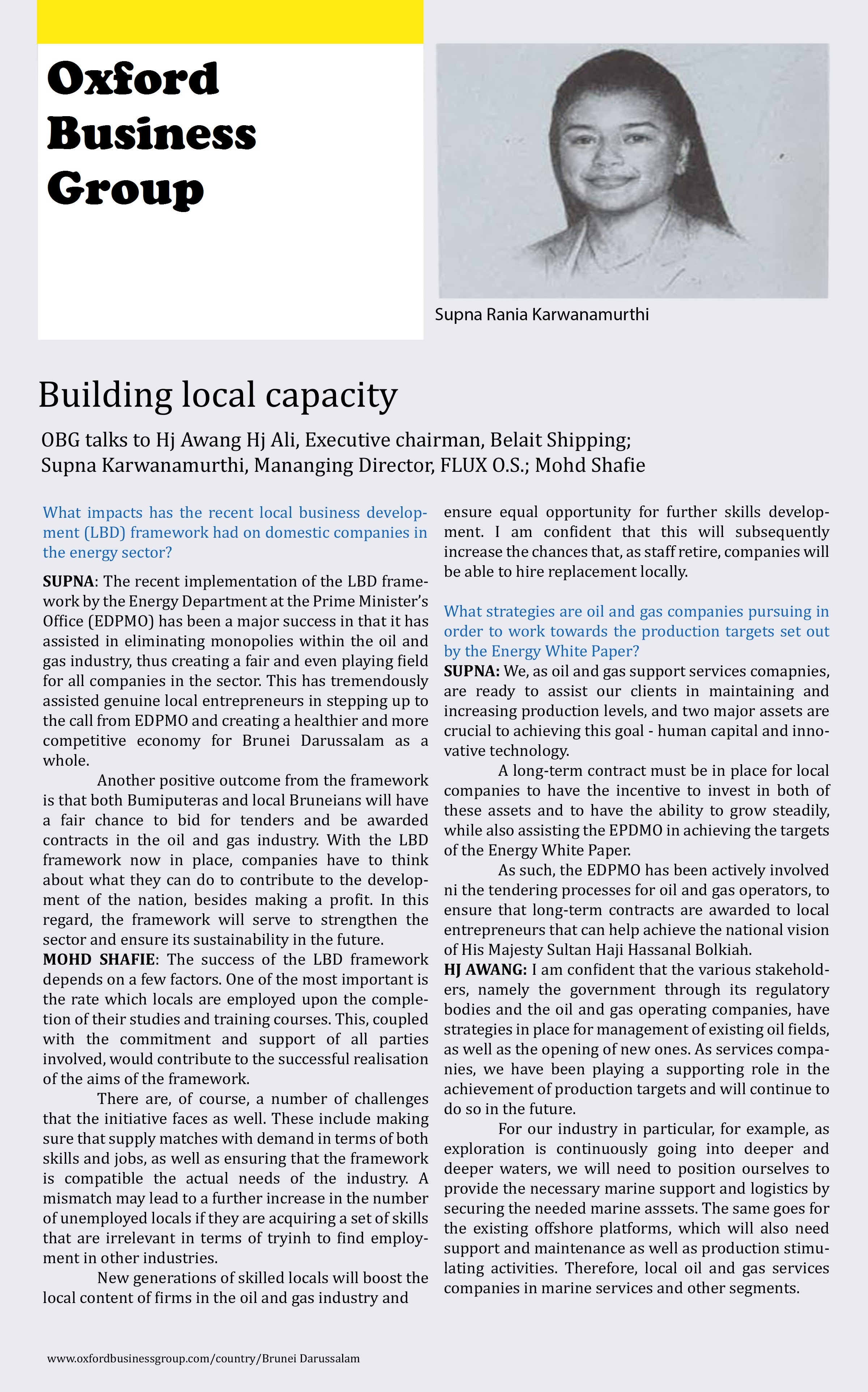 As such, the EDPMO has been actively involved in the tendering processes for oil and gas operators, to ensure that long-term contracts are awarded to local entrepreneurs that can help achieve the national vision of His Majesty Sultan Haji Hassanal Bolkiah.